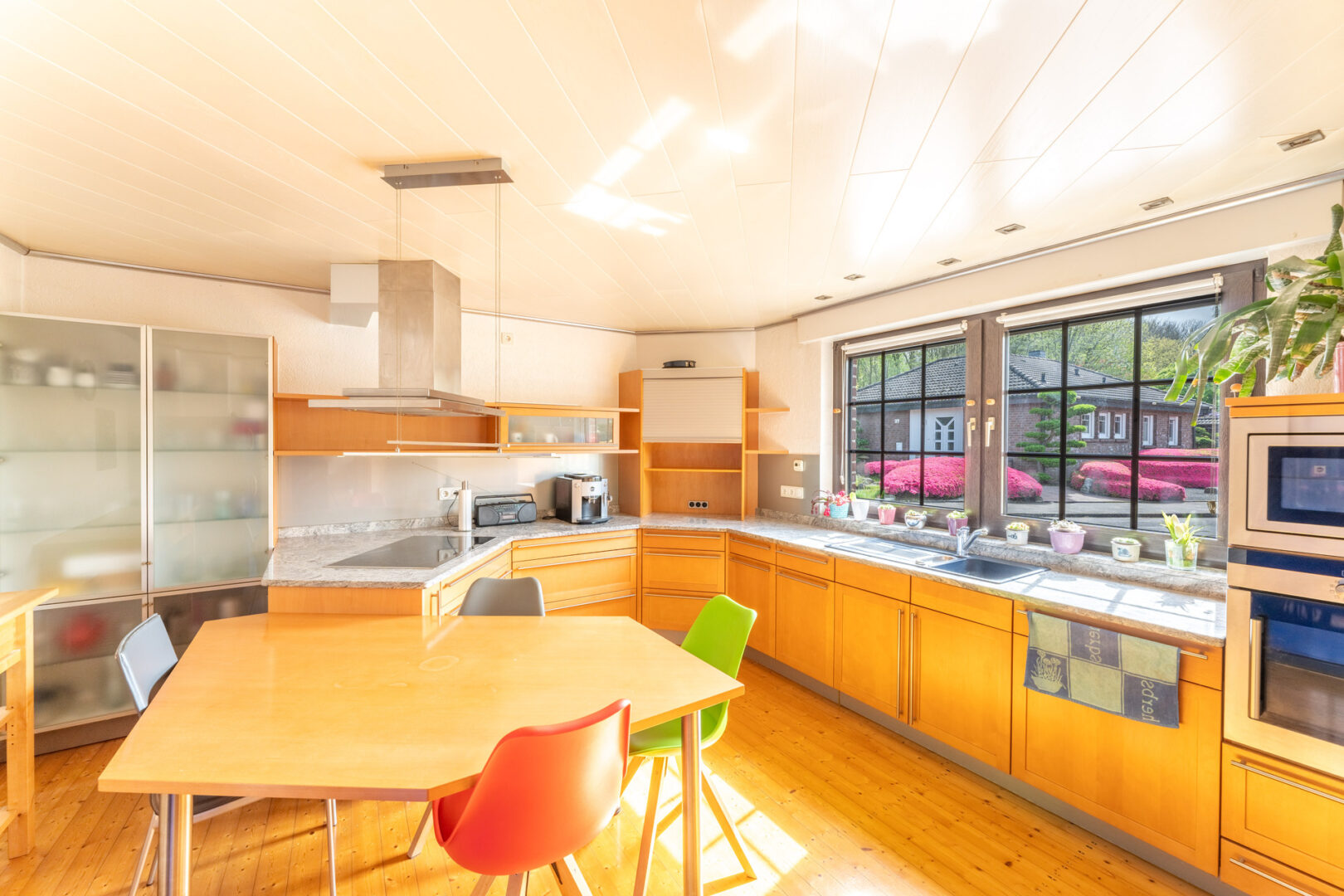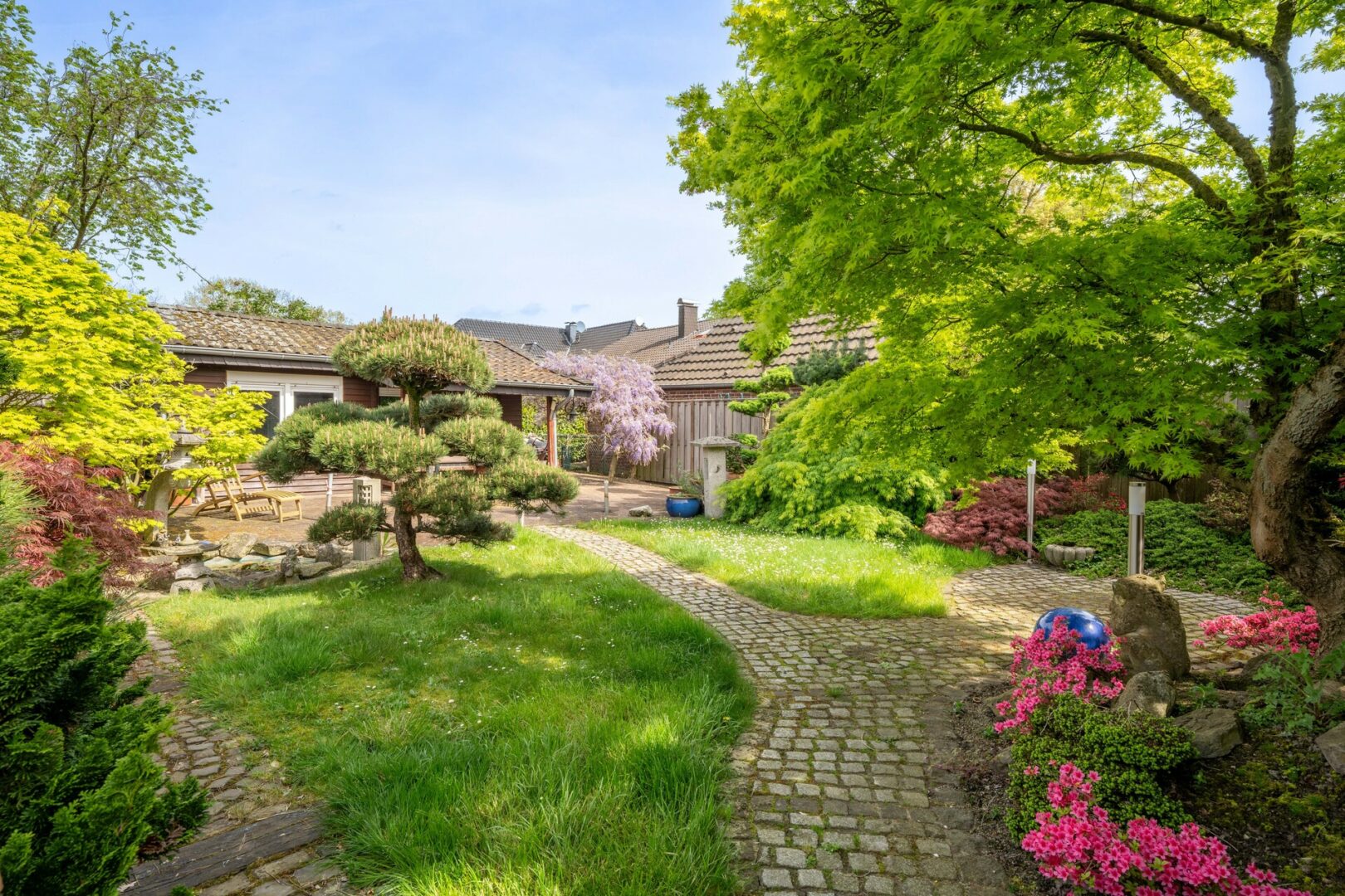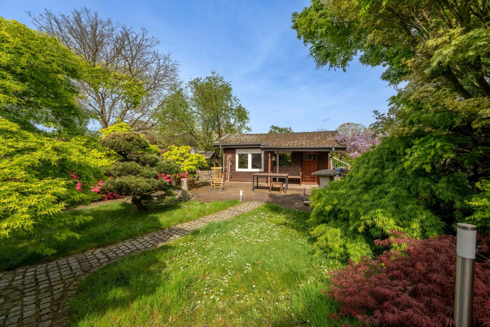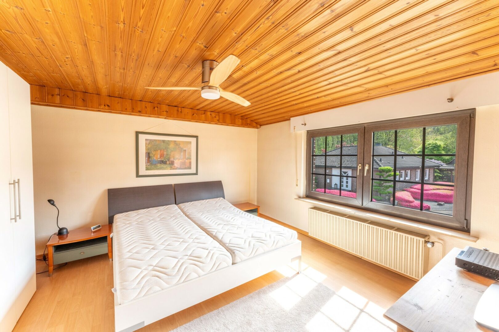 Das Highlight dieser Immobilie ist zweifelsohne der traumhafte Garten. Wunderschön angelegt und gepflegt, bietet er Ruhe und Privatsphäre, ideal für entspannte Stunden im Freien. Eine Grundwasserpumpe sorgt für eine kostengünstige Bewässerung und trägt zur Pflege dieser grünen Oase bei.