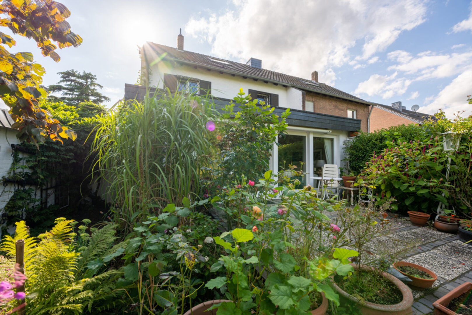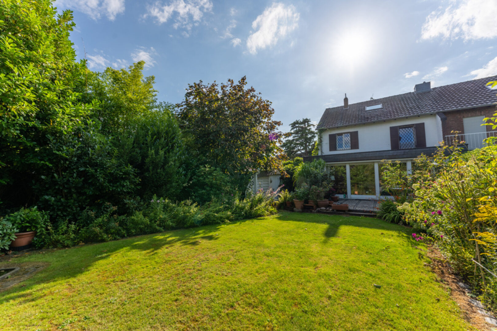 Über die gepflasterte Terrasse gelangt man von hier aus in den gepflegten und großzügig angelegten Außenbereich. Ihr Garten ist dank der vielen Grünpflanzen nicht einsehbar und bietet Ihnen somit absolute Privatsphäre. Eine grüne Oase in bester Lage.
