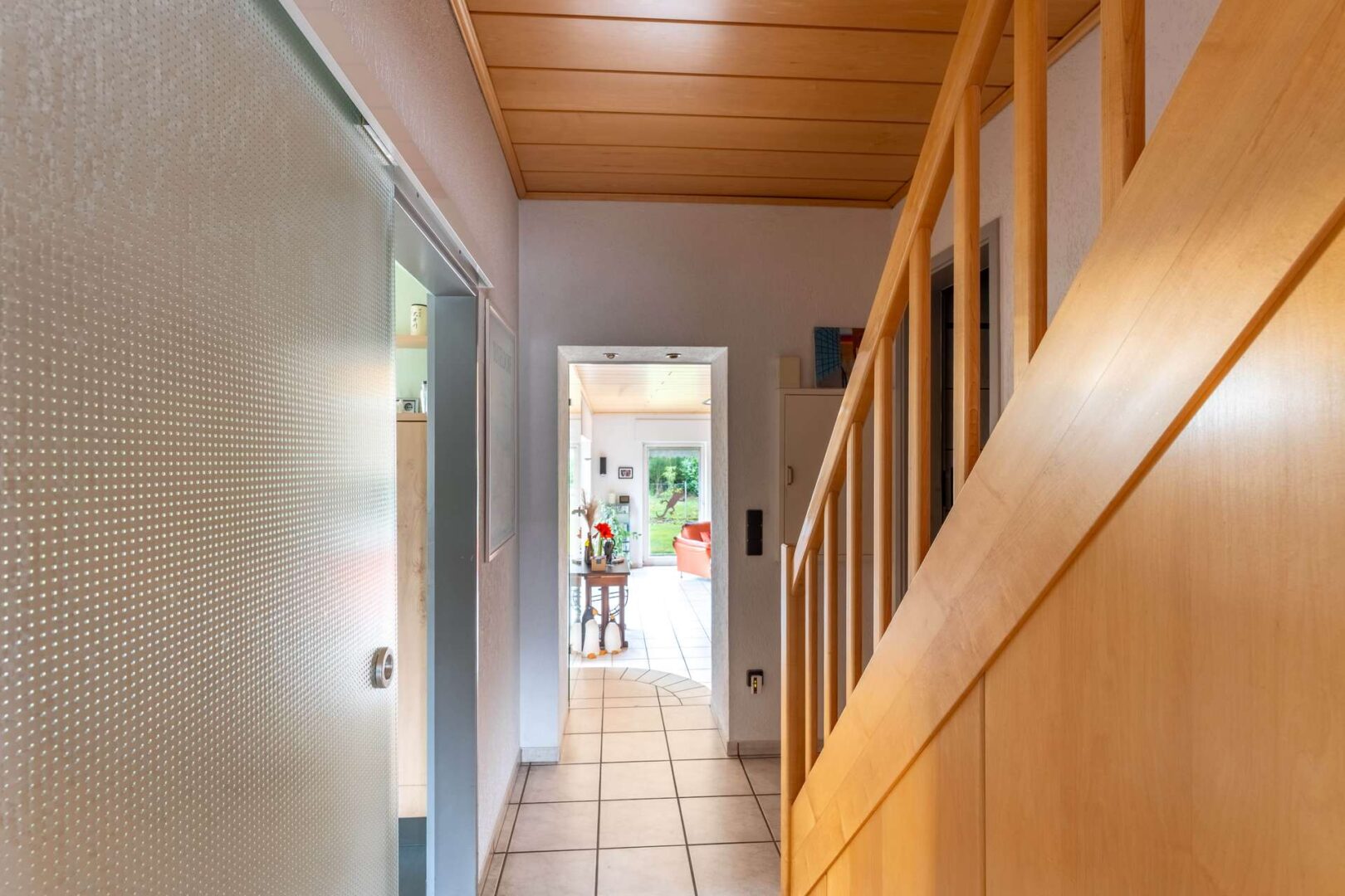 Im Erdgeschoss befinden sich neben der Küche mit Gartenblick und gemütlicher Frühstücksecke aktuell ein großes Arbeitszimmer sowie ein weiteres Zimmer (derzeit Hauswirtschaftsraum), die beide alternativ auch als Schlafzimmer genutzt werden können. Auch eine Verbindung der beiden Räume ist möglich. Ergänzt wird diese Ebene durch ein Badezimmer, sowie das großzügige Wohnzimmer im Anbau mit Kamin und Fußbodenheizung. Das Dachgeschoss bietet drei weitere Zimmer, darunter ein geräumiges Elternschlafzimmer mit Klimaanlage und ausreichend Platz für große Kleiderschränke. Ein zusätzliches Duschbad mit Tageslicht rundet das Raumangebot auf dieser Ebene ab. Ein kleiner Gewölbekeller steht als zusätzlicher Stauraum zur Verfügung und beherbergt zudem die Hausanschlüsse. Der Außenbereich wurde erst im Jahr 2017 neugestaltet und überzeugt mit einem liebevoll angelegten Garten und überdachter Terrasse. Ein besonderes Highlight ist die Sauna und Außendusche inklusive Warmwasser – ein idealer Rückzugsort für die ganze Familie. Für die Gartenbewässerung steht eine eigene Gartenpumpe zur Verfügung.