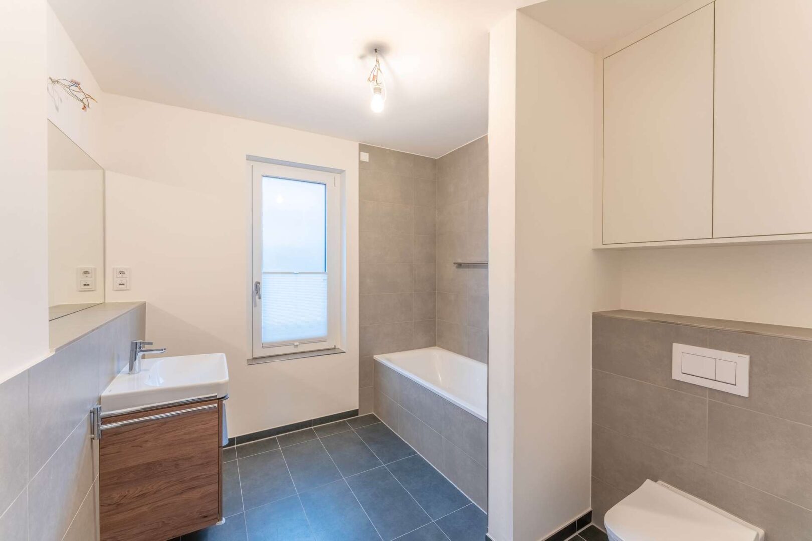 Beide Badezimmer präsentieren sich zeitlos und hochwertig: Ein barrierefreies Duschbad mit bodengleicher Dusche, Echtglasabtrennung und Regendusche sowie ein weiteres Tageslichtbad mit großzügiger Badewanne sorgen für höchsten Wohnkomfort.