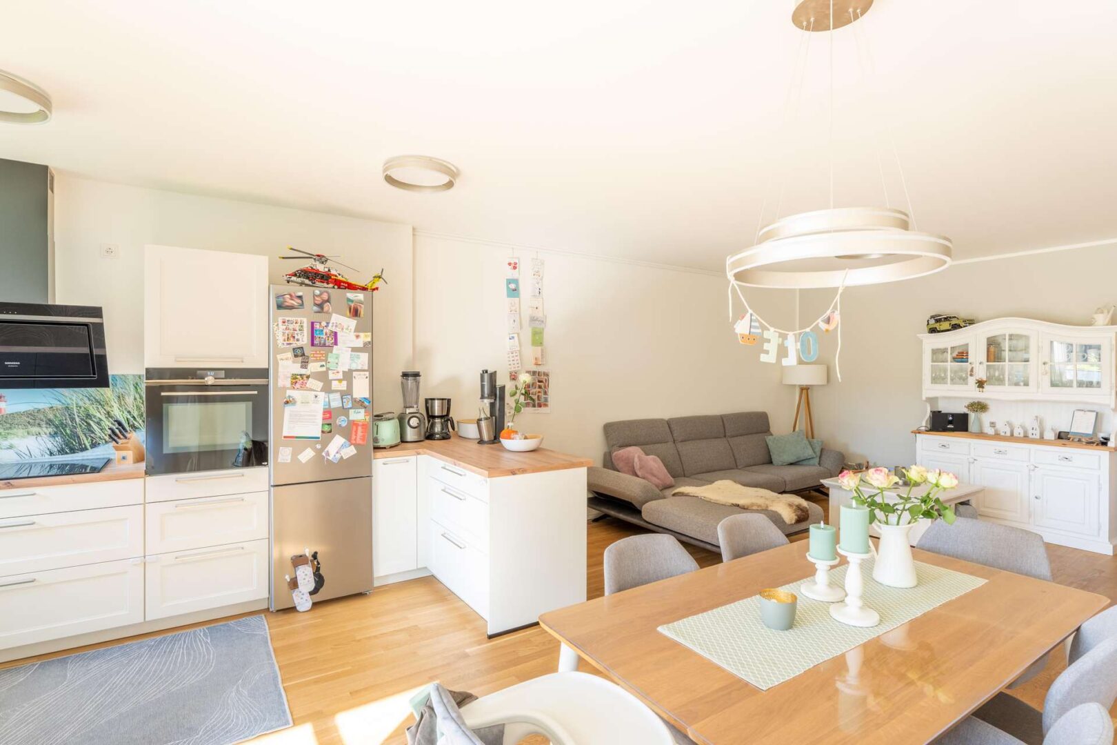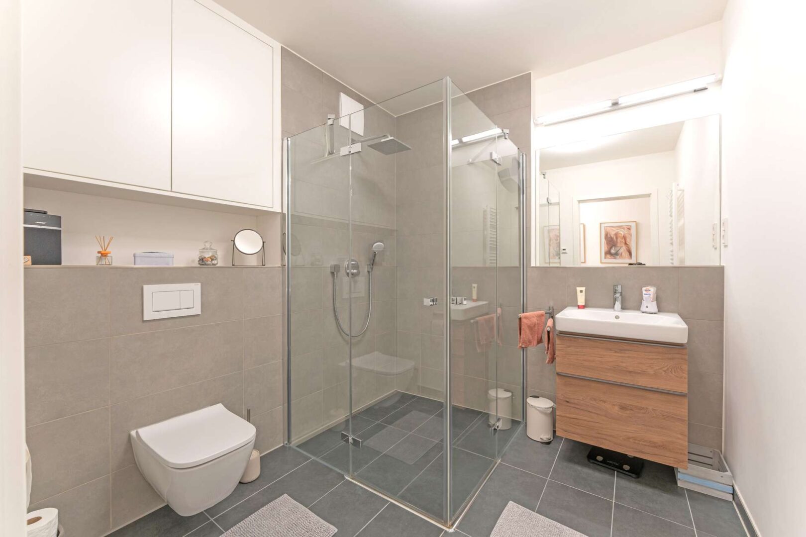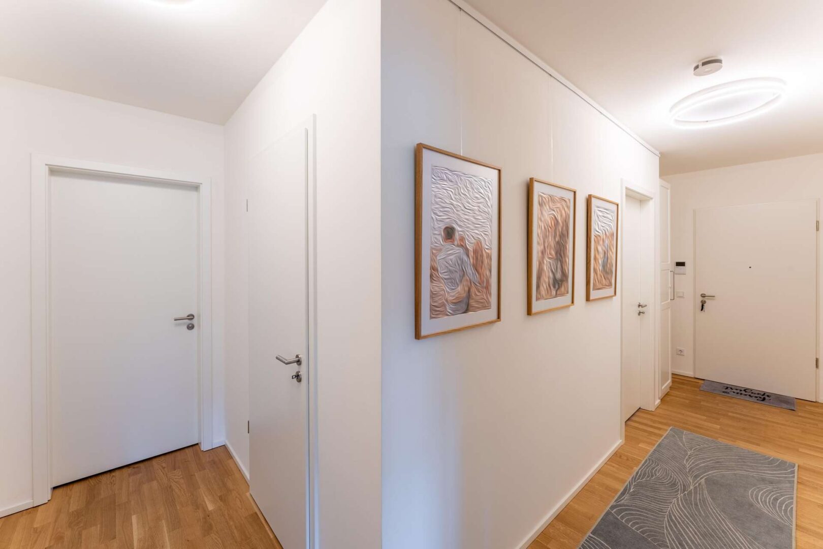 Die Wohnung ist Teil eines erst 2023 fertiggestellten Projekts mit insgesamt 27 hochwertigen Eigentumswohnungen, welches Maßstäbe in puncto Wohnqualität, Energieeffizienz und Komfort setzt. Die großzügig geschnittene Wohnung überzeugt mit Parkettböden in den Wohn- und Schlafbereichen, hochwertigen Fliesen und Sanitärausstattungen renommierter Hersteller. Die hochwertige Einbauküche lässt keine Wünsche offen und ist bereits im Kaufpreis enthalten. Zusätzlich sorgen maßgefertigte Einbauschränke, Plissees und Insektenschutz für durchdachten Stauraum und Wohnkomfort. Die elektrischen Rollläden und die Fußbodenheizung sind per Smartphone steuerbar. Dank Smart-Home-Technologie erleben Sie hier ein neues Level an Wohnkomfort. Die Wohnung verfügt über zwei voll ausgestattete Badezimmer – darunter ein barrierefreies Duschbad mit eleganter extra großen Echtglas-Duschabtrennung und Regendusche. Das zweite Bad begeistert mit einer großer Badewanne und viel Tageslicht.