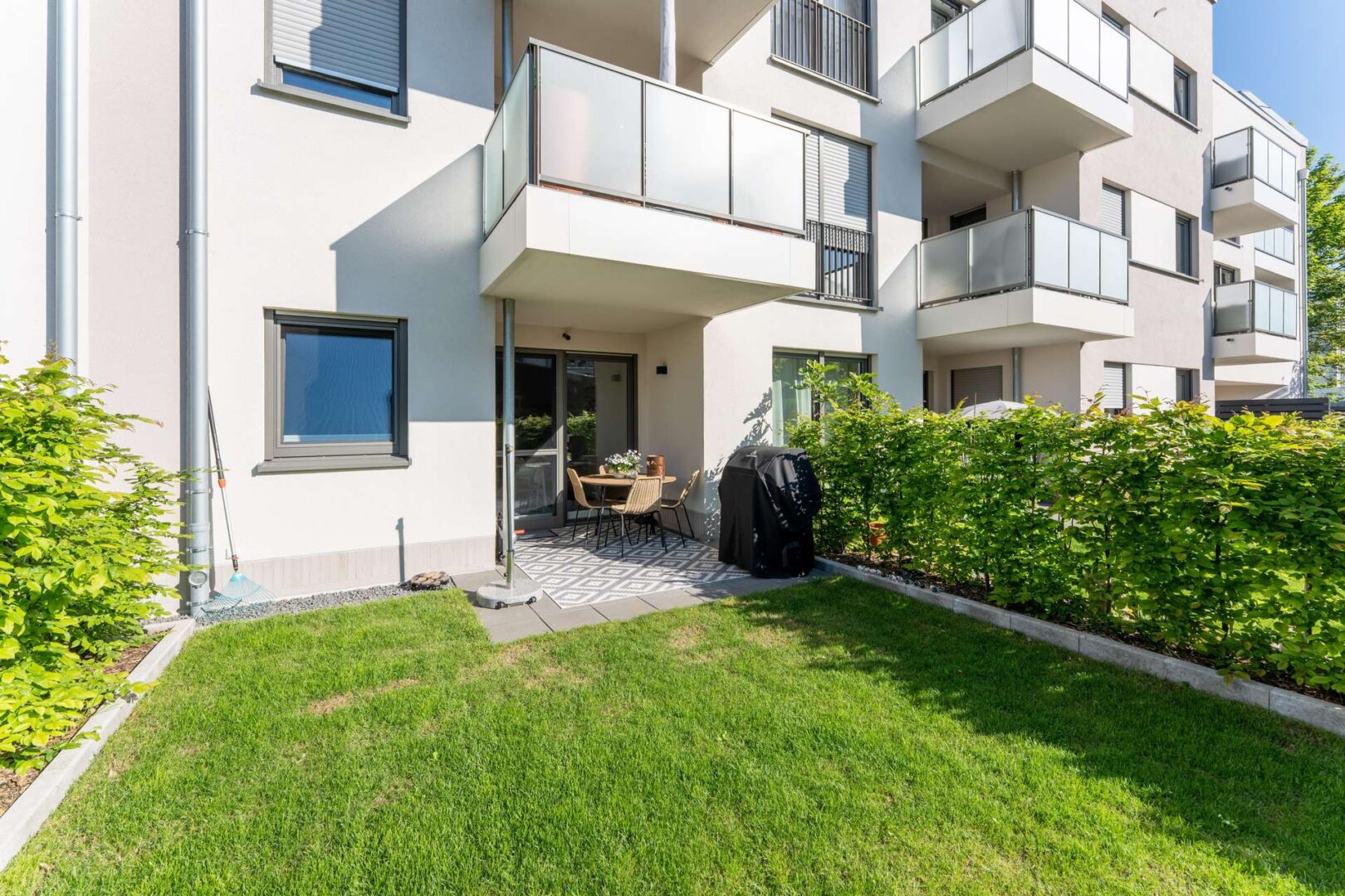 Ein Highlight der Wohnung ist der Garten mit perfekter Südausrichtung sowie eine teilweise überdachte Terrasse, die zum Entspannen und Genießen einlädt – perfekt für warme Sommertage und laue Abende.