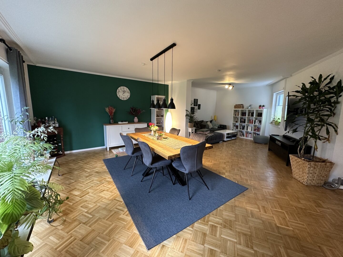 Im großzügigen Eingangsbereich befindet sich das Gäste-WC und ein Zugang zur Küche. Erst im Februar 2023 maßangefertigt kann die Küche nach Absprache von den Vormietern übernommen werden. Der helle Wohn-/Essbereich mit Zugang und Blick in den Garten lädt zum Verweilen ein. Nicht einsehbar genießen Sie hier volle Privatsphäre. Zudem steht Ihnen eine eigene Sauna im Außenbereich zur Verfügung.