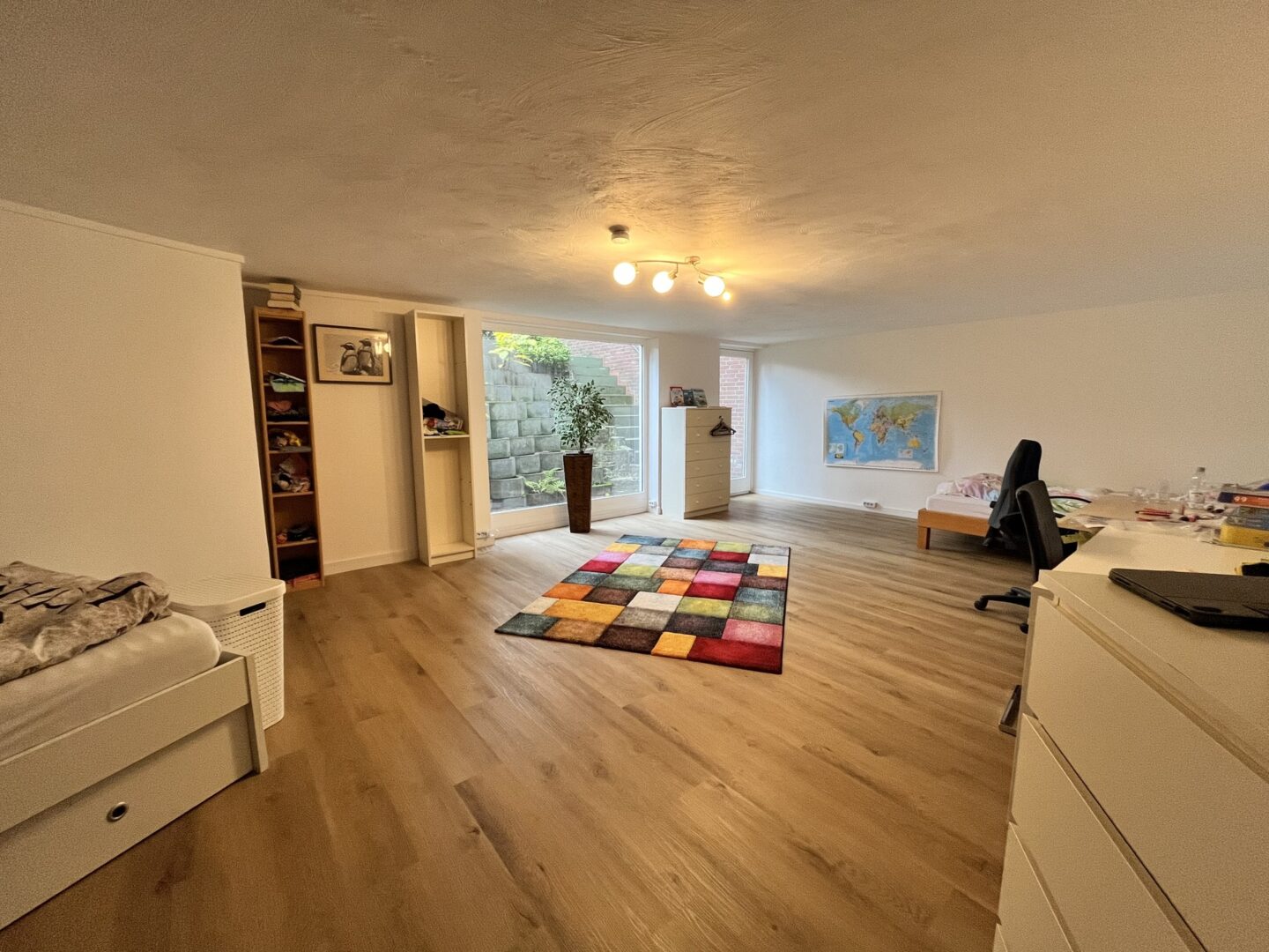 Der Bungalow ist unterkellert und bietet im Souterrain mit einer Nutzfläche von ca. 35m² die ideale Möglichkeit für ein weiteres Zimmer mit Tageslicht und Zugang zum Garten.