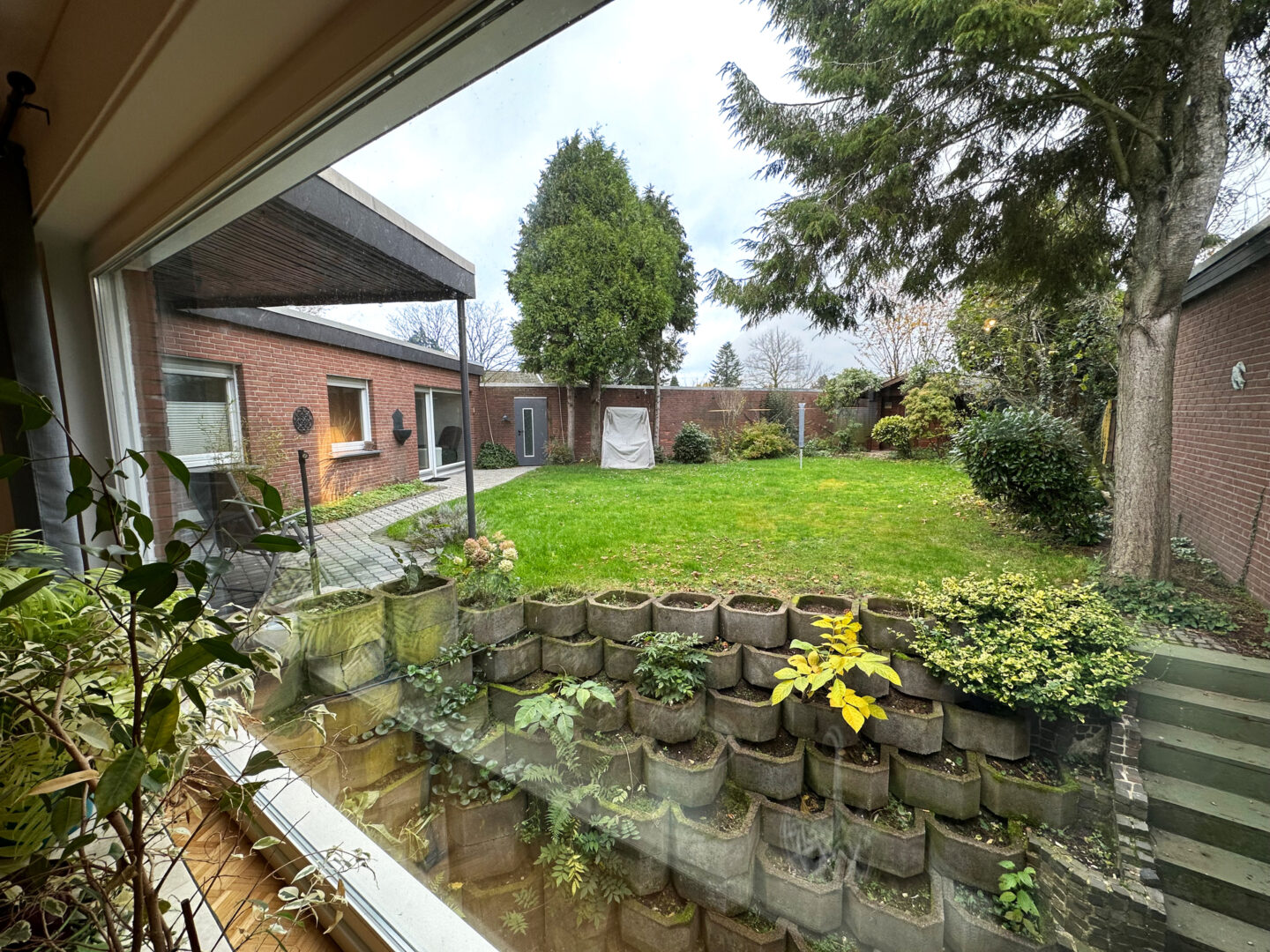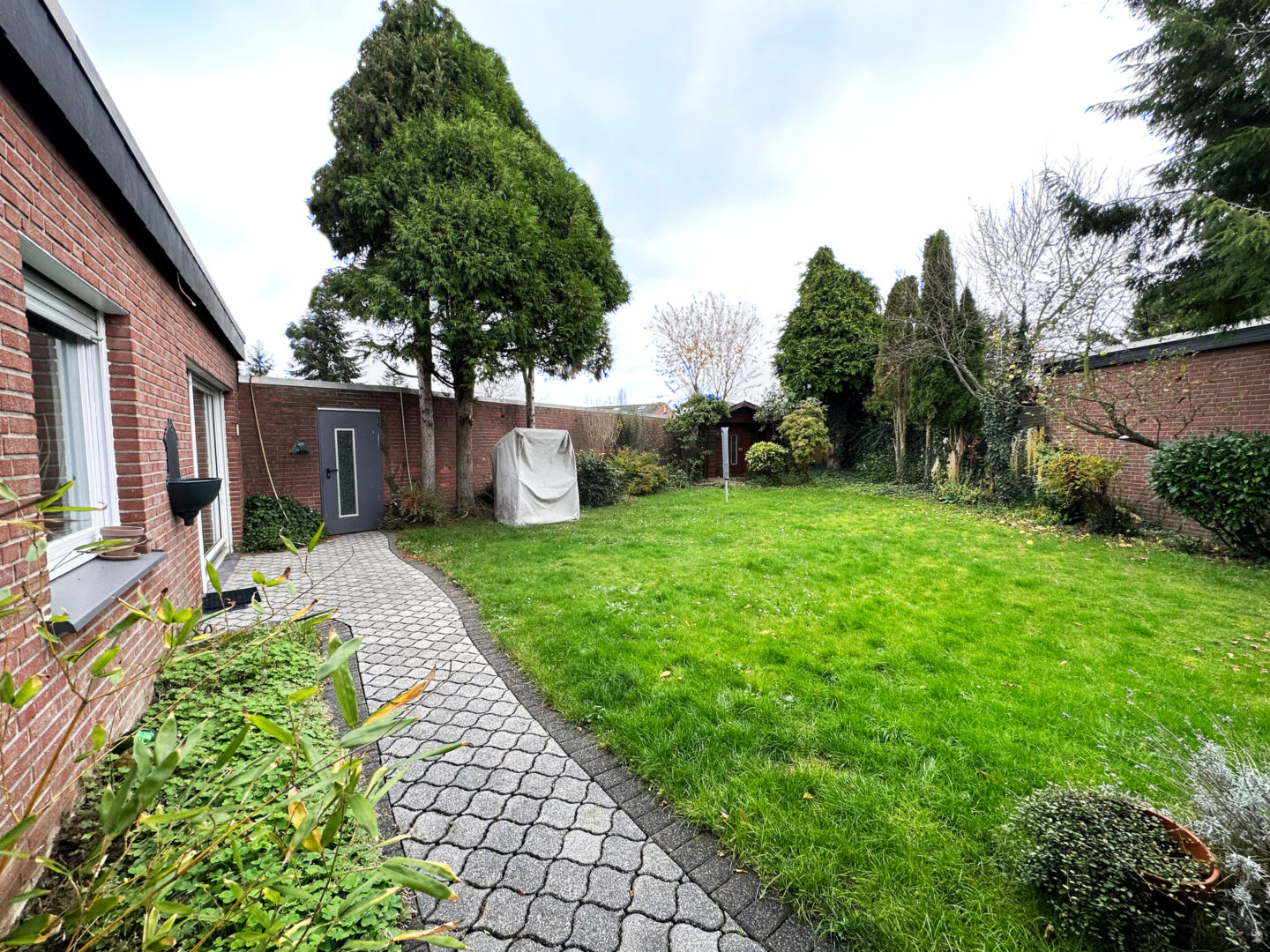 Zum Bungalow gehört eine Garage, die durch den Garten ins Haus führt. Diese bietet ausreichend Platz für ein Auto, Gartengeräte und Fahrräder. Ein Grundwasserbrunnen zur Gartenbewässerung steht ebenfalls zur Verfügung.