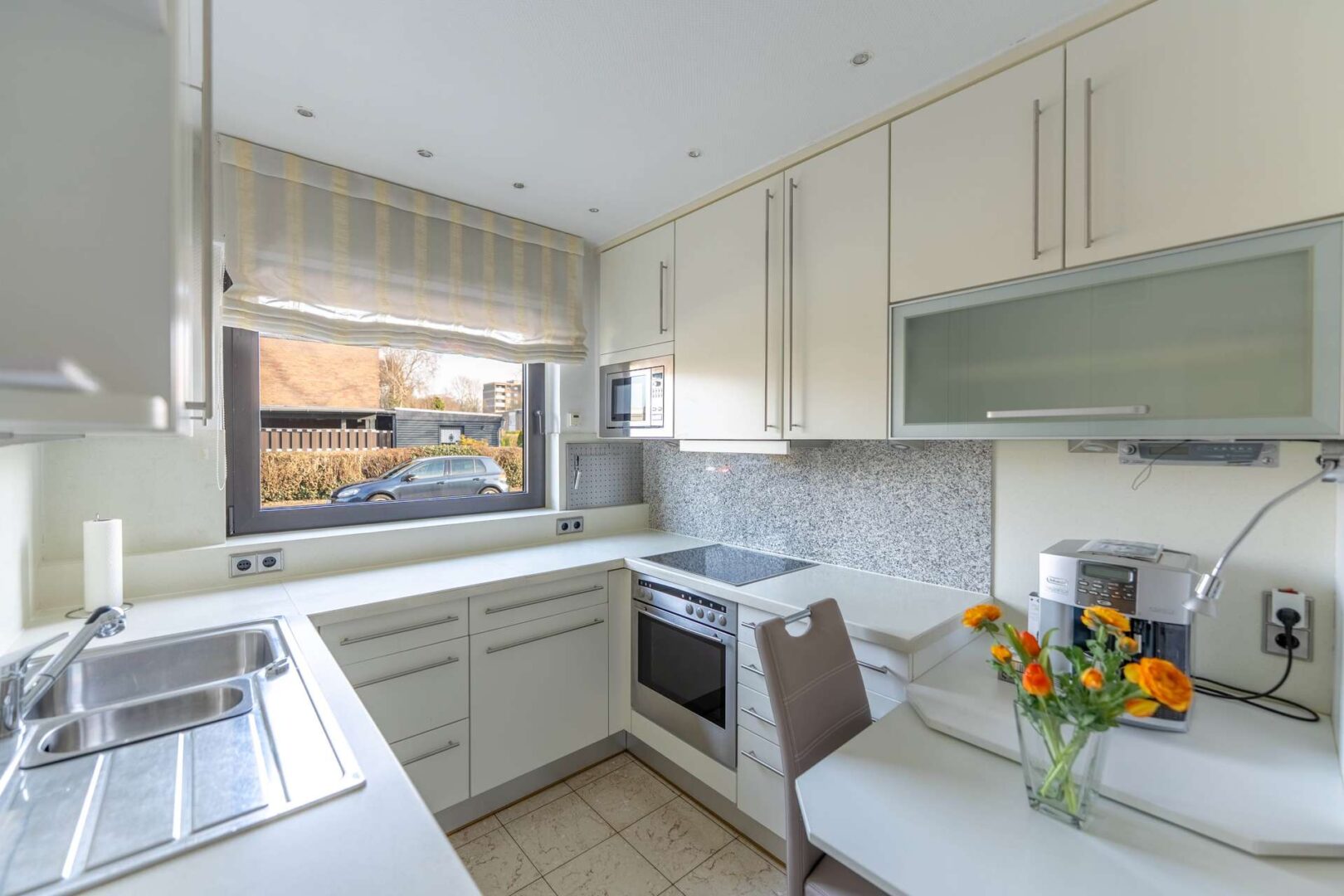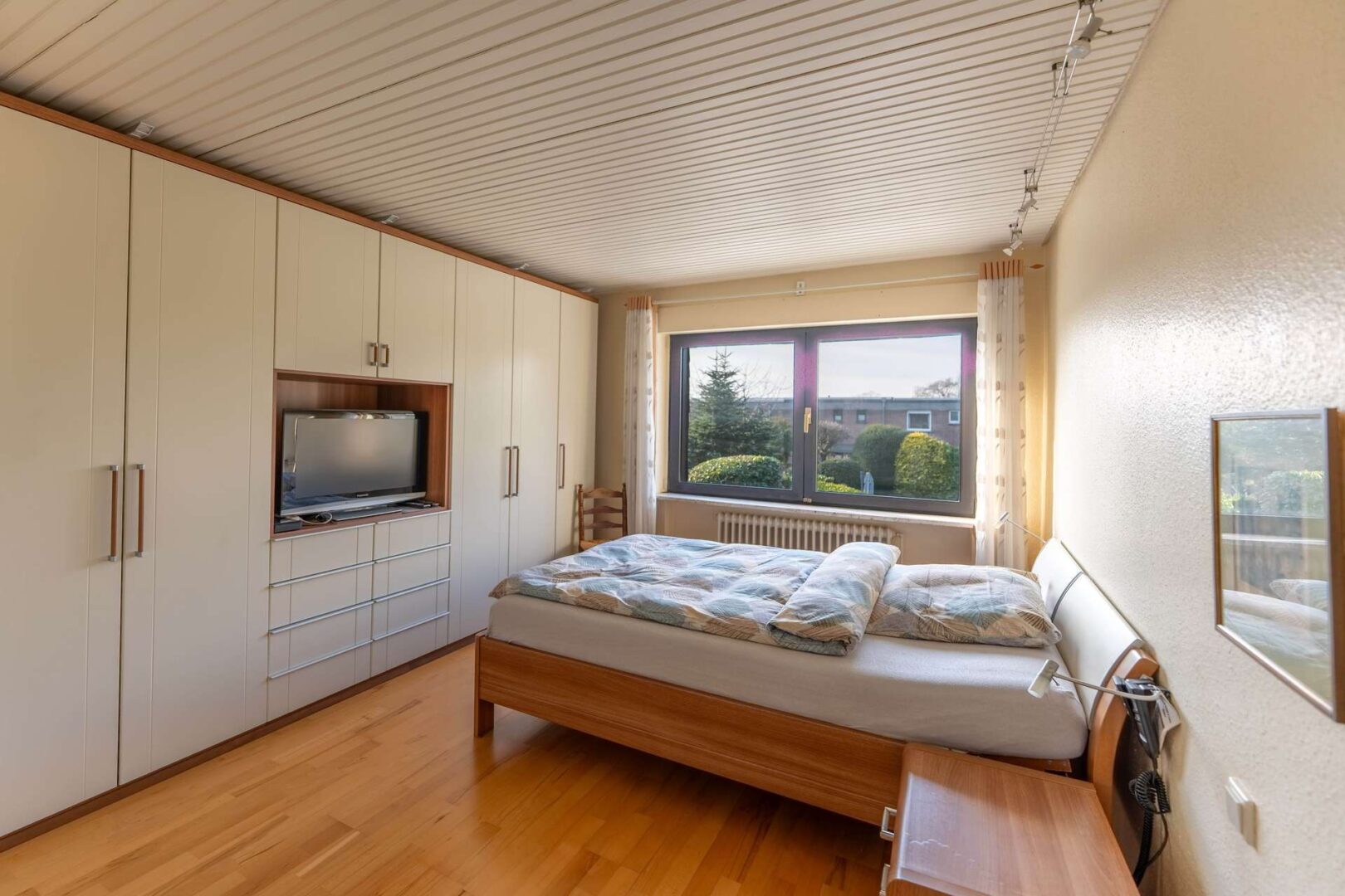 Auch technisch überzeugt die Immobilie: Die Energieversorgung erfolgt über Fernwärme. Die Fenster stammen überwiegend aus den 1980er- und 1990er-Jahren. Im Wohnzimmer, der Küche und dem Elternschlafzimmer sind elektrische Rollläden installiert, während die übrigen Rollläden manuell bedienbar sind. Das Flachdach wurde im Jahr 2022 neu abgedichtet, sodass hier bereits eine wichtige Modernisierungsmaßnahme durchgeführt wurde.