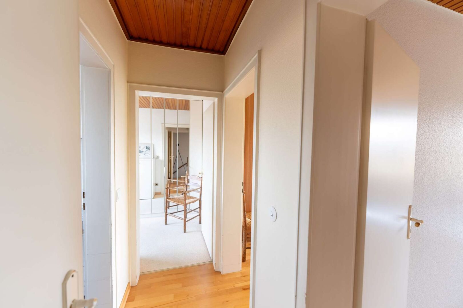 Im Dachgeschoss stehen drei gut geschnittene Zimmer zur Verfügung, die flexibel als Schlafzimmer, Kinderzimmer oder Homeoffice genutzt werden können. Besonders hervorzuheben ist das im Jahr 2014 vollständig modernisierte Badezimmer mit bodentiefer Dusche, das zeitgemäßen Wohnkomfort bietet. Für zusätzliche Barrierearmut wurden im Hausflur sowie im Kellerabgang weitere Handläufe angebracht.