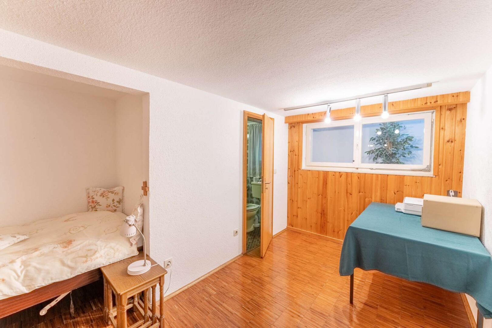 Das Kellergeschoss bietet neben klassischen Abstellflächen und einem Hauswirtschaftsraum ein zusätzliches Zimmer mit eigenem Bad und Fenster. Dieser Bereich eignet sich ideal als Gästezimmer, Hobbyraum oder Rückzugsort. Bitte beachten Sie, dass dieser Raum nicht Bestandteil der offiziellen Wohnfläche ist.