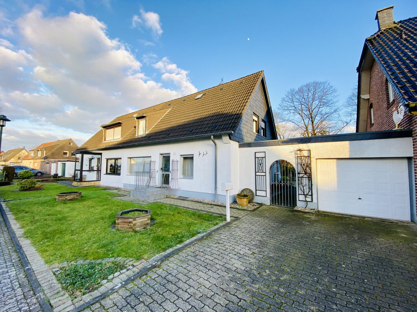 Eine Garage mit zusätzlichem Stellplatz und Gartenzugang rundet dieses Angebot ab.